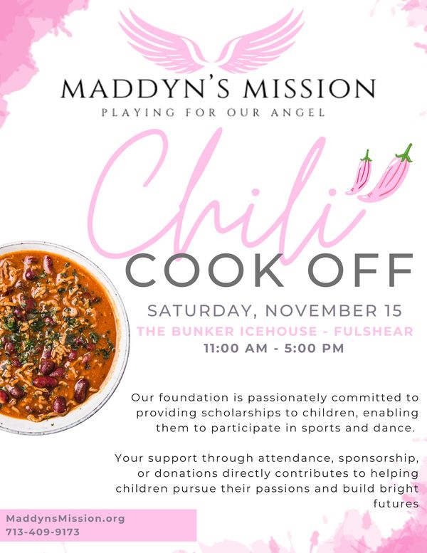 Come out and celebrate our Mission for Maddyn at the 1st Annual Chili Cook Off!